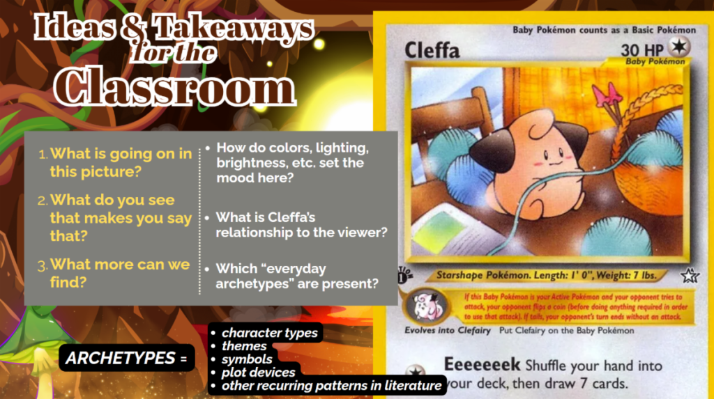 Dr. Zoe Plotnick, who serves the OCTELA Board as TESOL Chair, presented a session exploring how art and visual imagery can offer an accessible point of entry for students to playfully practice drawing inferences, synthesizing text-to-self and text-to-text connections, and other cognitive skills that are the foundation of literary analysis. Her session, which was titled “This Card is You: Tarot, Pokémancy, and the Art of Interpretation,” introduced approaches that invite students to approach literary theory with symbolic play, visual analysis, and recognition of the everyday archetypes that help stories resonate across time and culture.